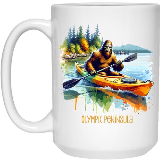 Sasquatch in Kayak - Olympic Peninsula - Mugs, Black, White and Accent Colors