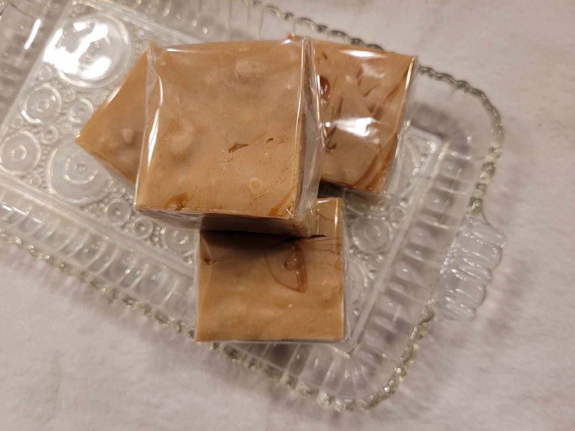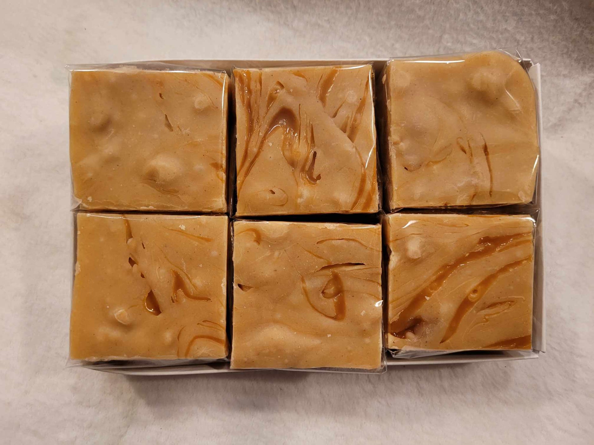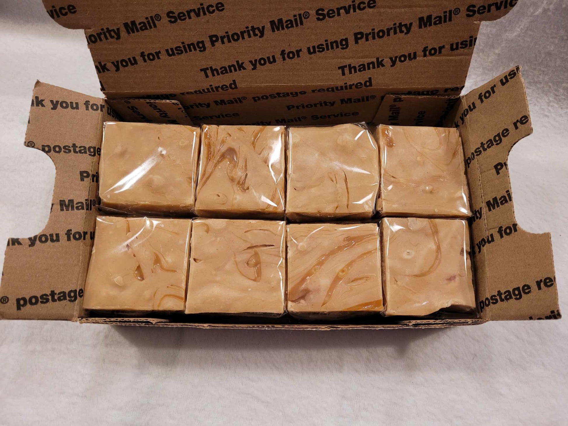 Your fudge will come in pieces (approximately 2"x 2" and 1/4 lb) wrapped in plastic wrap to retain moisture, packed in a priority mail box.